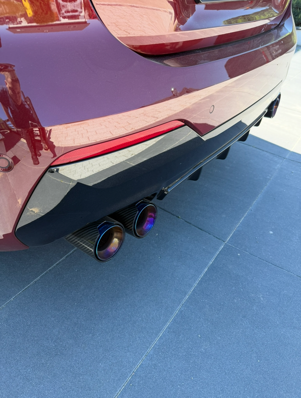 This quad carbon exhaust tip instantly upgrades your BMW rear aesthetic. Carbon fiber face and stainless steel body create a factory‑plus finish that turns heads at stops and shows.
